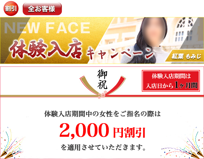 ご新規様、リピーター様に限らずご案内時には、女性による確認とお願いをさせていただく場合がございます。